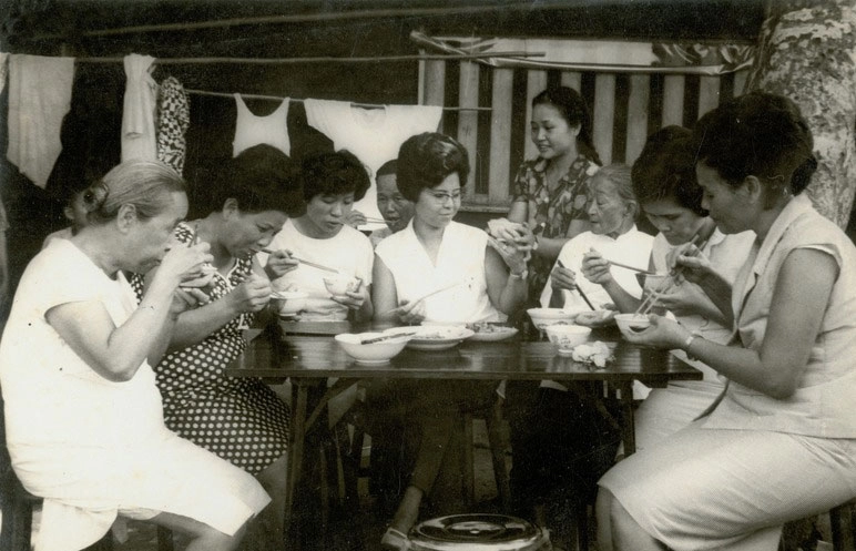 平慧永老太太很護持上人(左一),曾分享家族中一位長輩,希望子孫為她做「生前的功德」。(1996/12/31;圖片來源:花蓮本會提供)