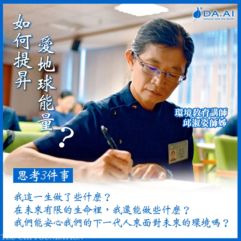 做慈濟修福,薰法香持慧,福慧雙修,累積慧命的資糧,對於我的下一世,我越來越放心了。但對於全球暖化的地球,越來越不放心。所以我持續抬頭挺胸,繼續到學校推廣環保的願力,至2026年3月,已有3185場,但我的腳步絕不會停下來。