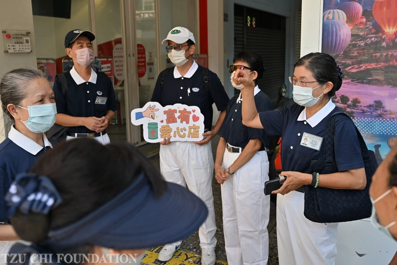 天天穿制服,天天都幸福!臺中市富有愛店家串門日,邱淑姿參與推動富有愛心店。(攝影/林萬教)