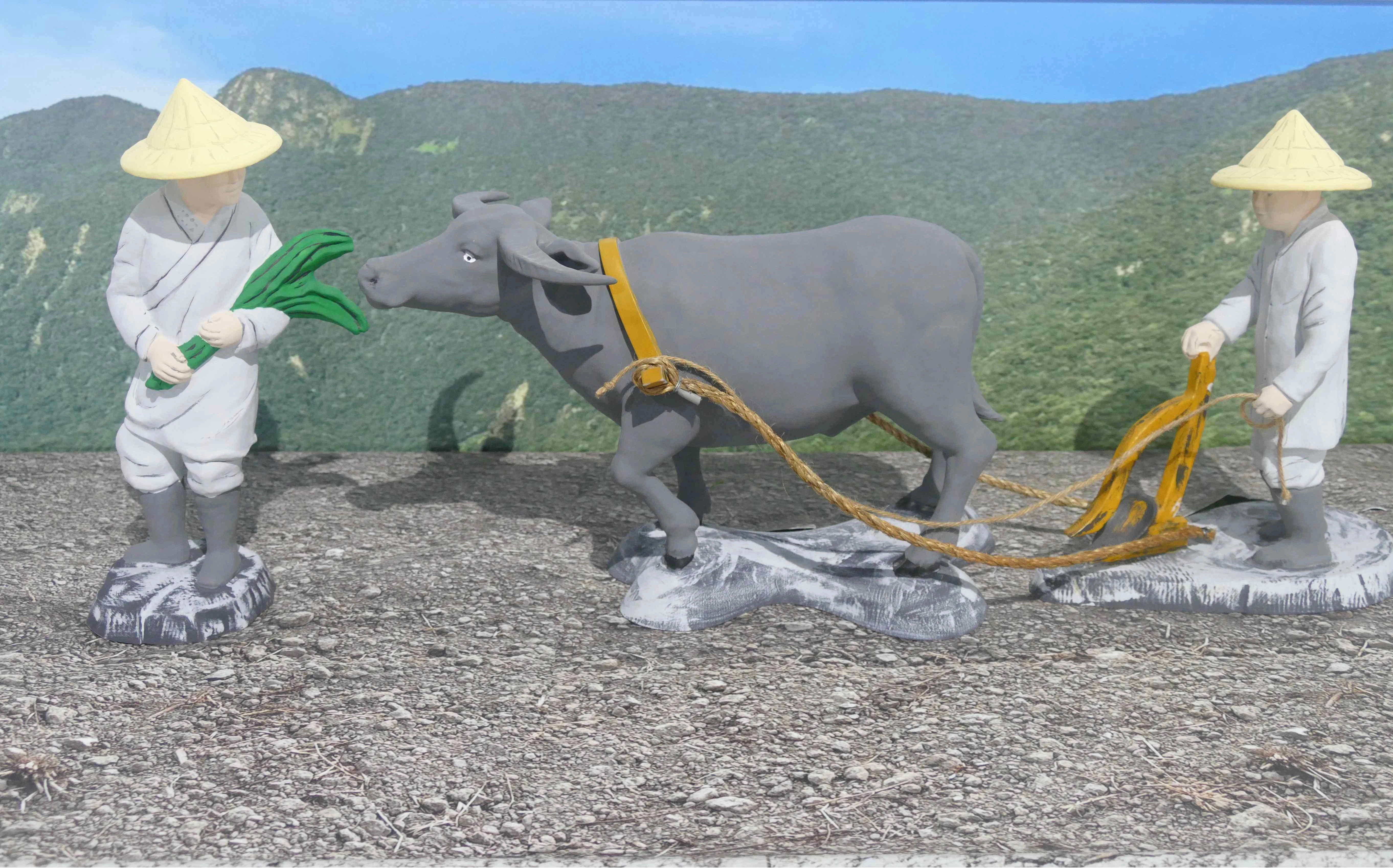早年,上人與德慈師父一同耕田,因不忍鞭打牛隻,而由上人手持甘蔗尾引導牛前進,展現無比的慈悲與智慧。(攝影/童茹棠)