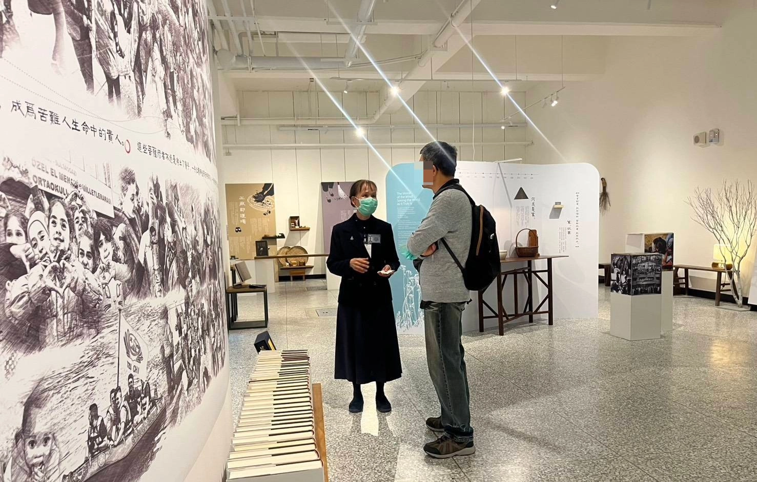 3月8日,一對來自桃園的夫婦前來參訪。起初,這位先生獨自專注地閱讀布展上的文字敘述,我便靜靜走到他身旁,輕聲招呼,詢問是否需要導覽說明。他很客氣地回覆:「不用,我自己看就好了。」