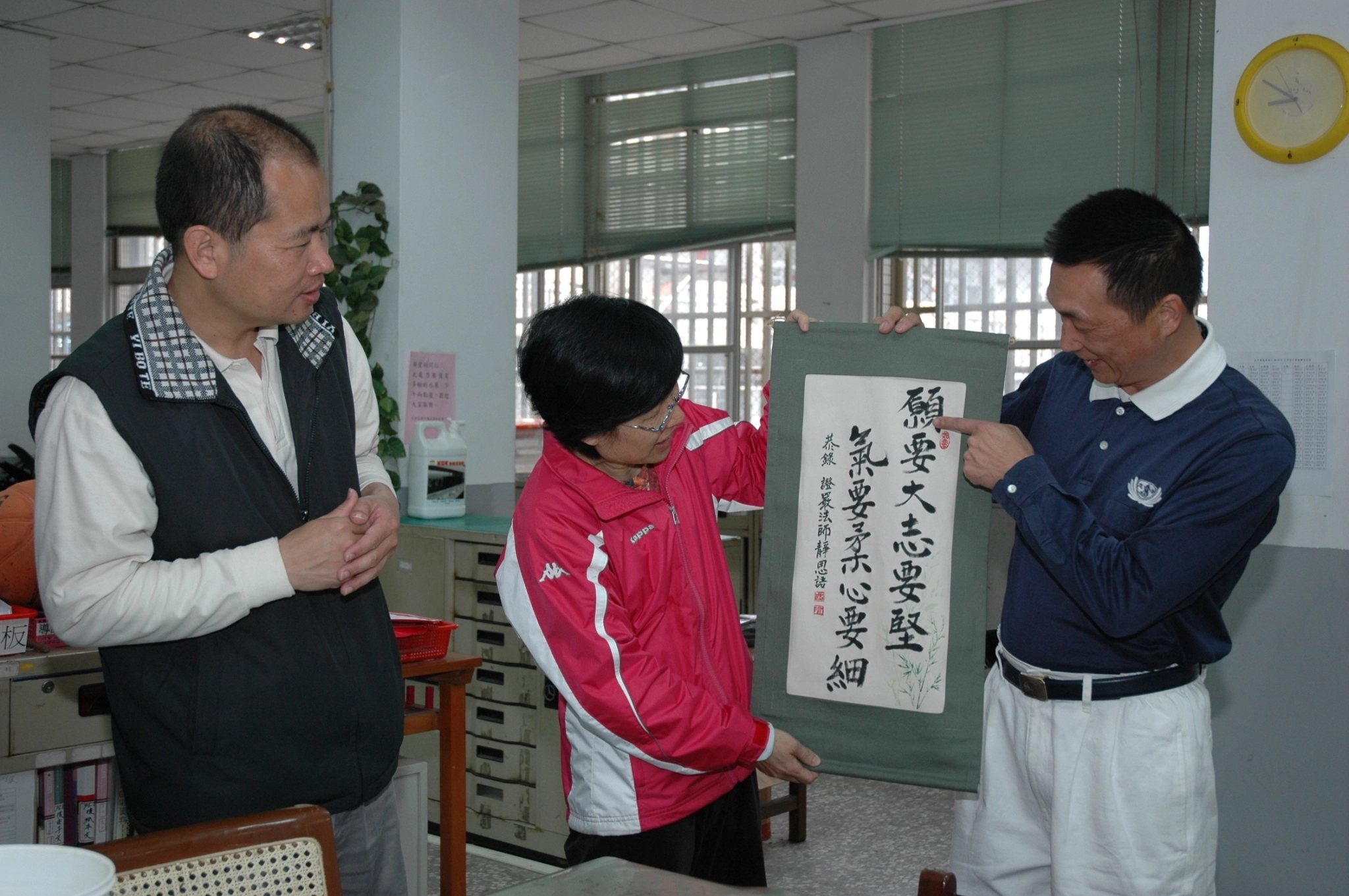 2008年,慈濟推動「靜思語好話一條街」,我投入開發具質感的布質靜思語,在上人法語之外,也融入繪畫創作。當時在龍井地區有一百多家店響應,我們每個月都會上街更換靜思語,與許多店家結下好緣。也因為這樣,每逢歲末祝福時,便能邀請到一整車的店家與民眾一同參與。