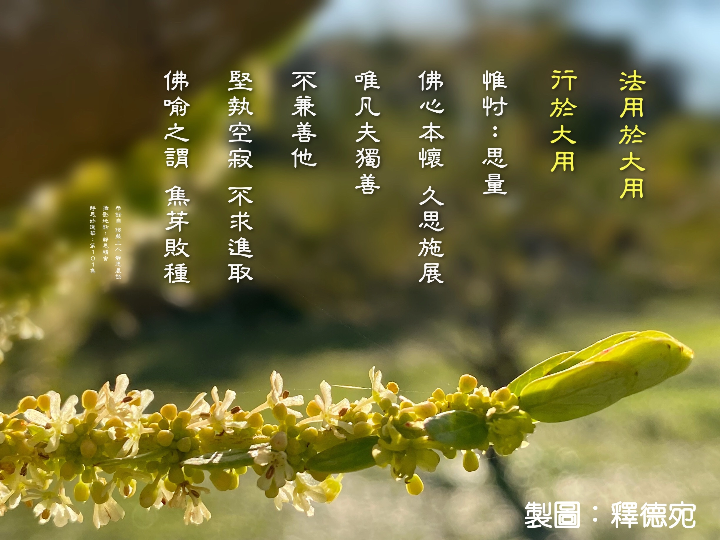《法華經序品第一》第一〇一集「法用於大用,行於大行」的主題,與我的人生經驗十分契合。上人提到一位實業家之子不願承接父親事業的故事,也同樣發生在我的家庭。