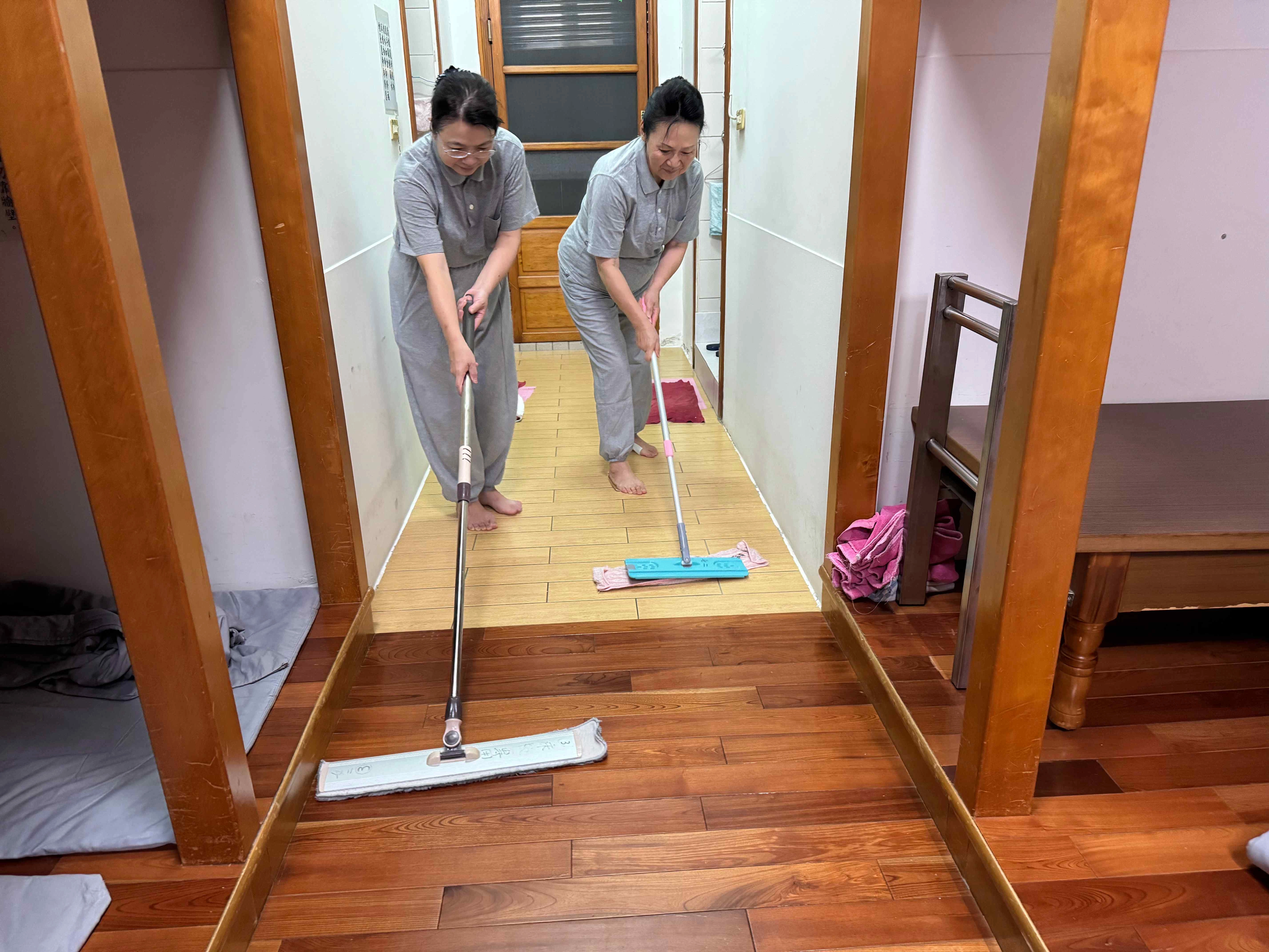 儘管整日的導覽與通宵的記錄已耗盡體力,大家於翌日清晨仍合力清掃寮房。眾人放下疲憊、不言辛勞,在字裡行間記錄感動,在灑掃應對中實踐修行的精神。(攝影/江美芳)