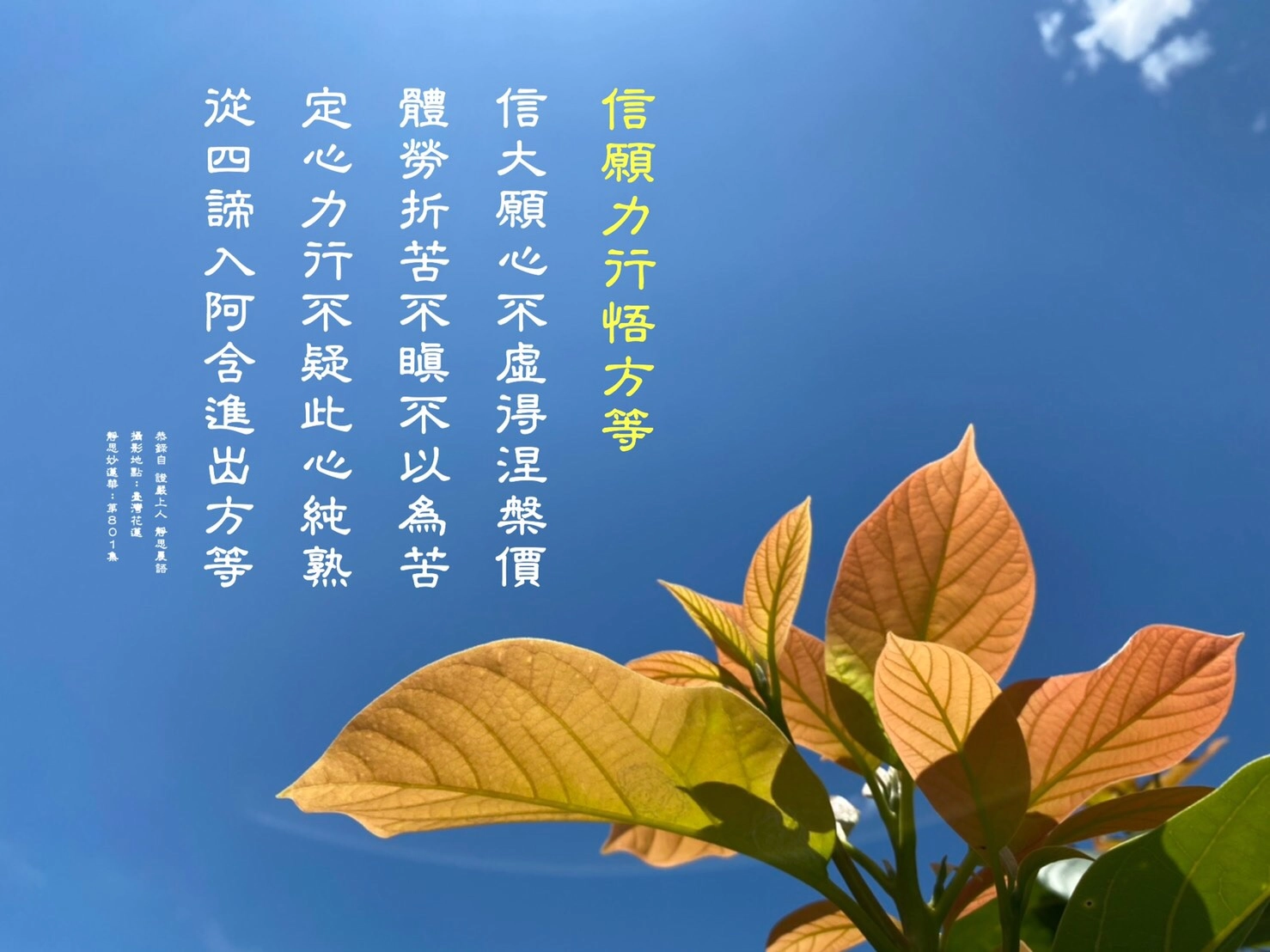 生命有限,慧命無窮。甘願做,歡喜受;定心力行不疑,單純清淨的心,認清方向,向前精進。