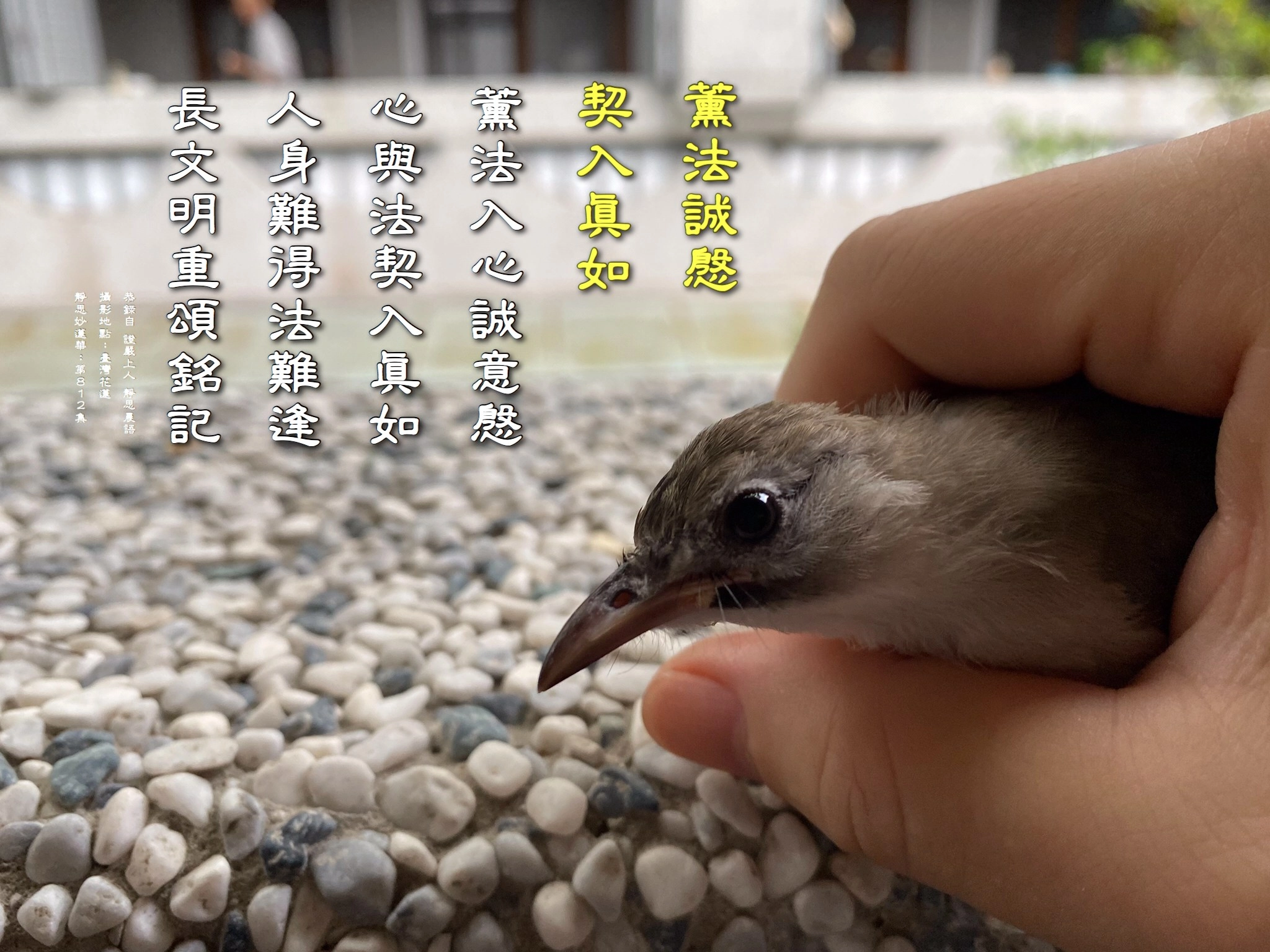 因為有薰法香,才明了「人身難得,佛法難聞」的道理,可是感覺社會上很多人不重視,包括我們道場內的師兄姊,一樣「半知半解」,否則當有機會來接觸佛法時,為何不會也不願意把握呢?這難道一切都是因緣的生滅安排?心裡納悶著。