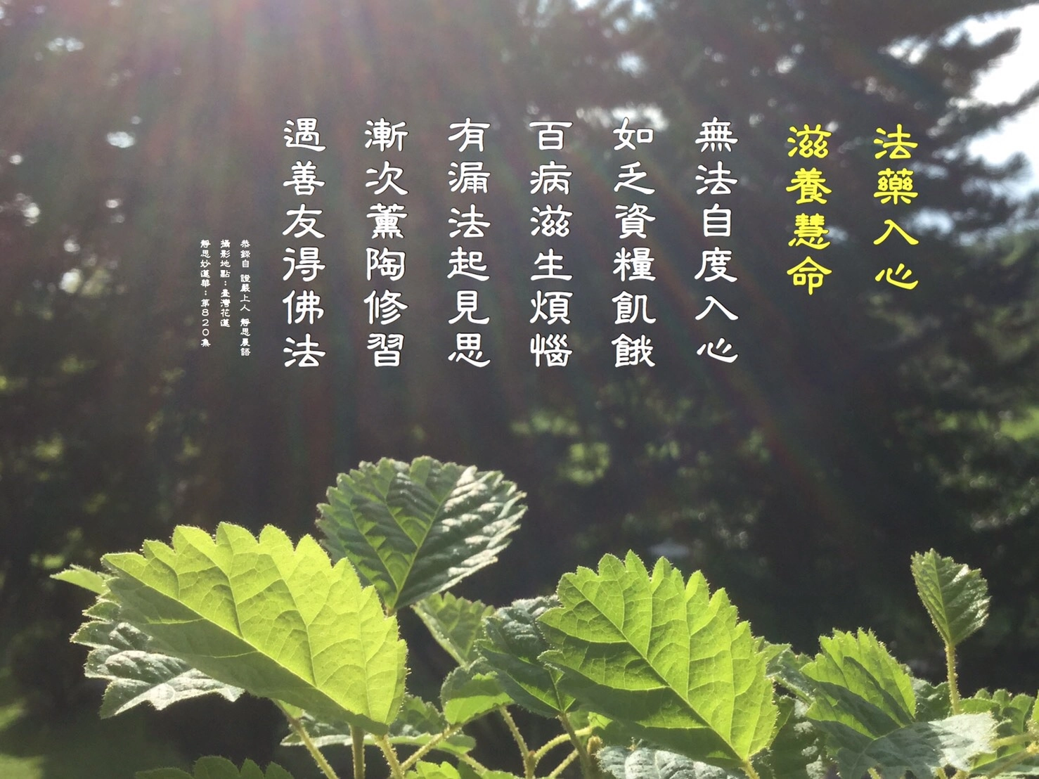 最近疫情慢慢緩解,希望能早點恢復正常作息,來去自如,堅定精進心。所以譬喻,求人天則有向上心,求解脫則有出世心。在人間做善事,也是求上進,更進一步求解脱,就是要去無明。漸次求法,趨向於中道之大乘法,不可中途停滯下來,要與日精進。這一波疫情也讓我們學習到,原來過去的平凡是多麼不容易,能暢快呼吸(不用口罩),是多麼幸福,現在卻變成奢望的期待。