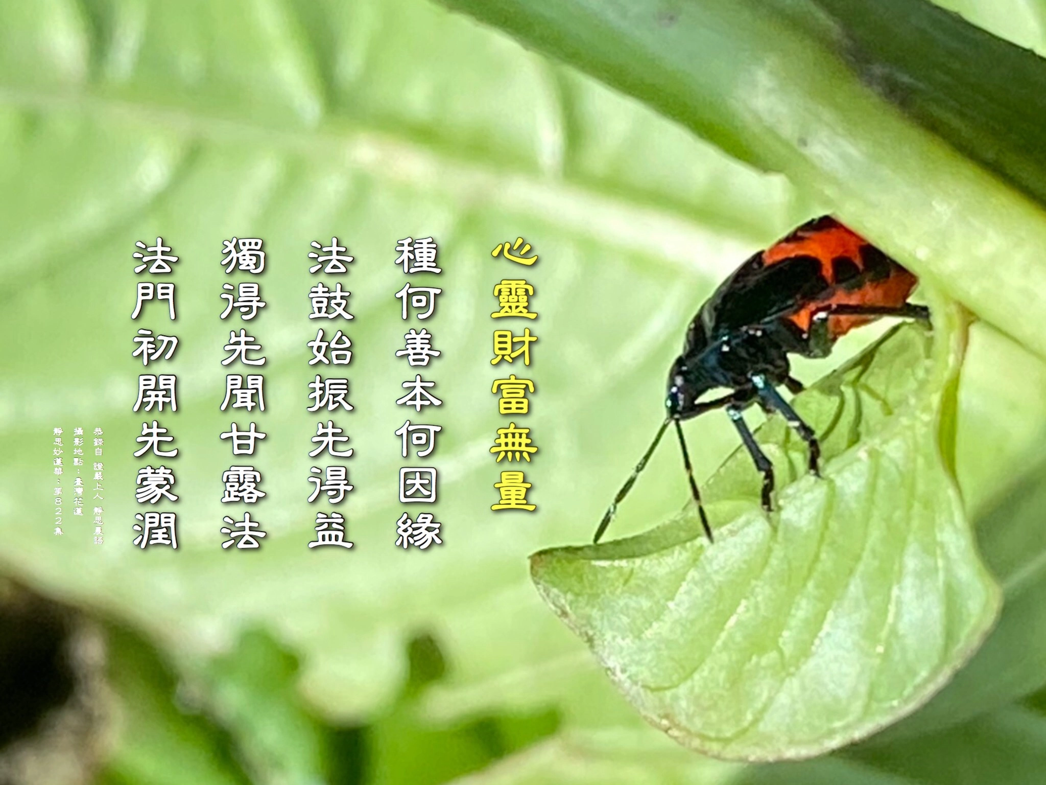 扣鐘偈:聞鐘聲煩惱輕,智慧長增菩提,離地獄出火坑,願成佛度眾生。晨語「薰法香」就是一大考驗⋯只要有心,則不難!修持得自利,發大願利他度人,啟發愛心、付出無求,就是「無漏善」,可以滋養慧命。