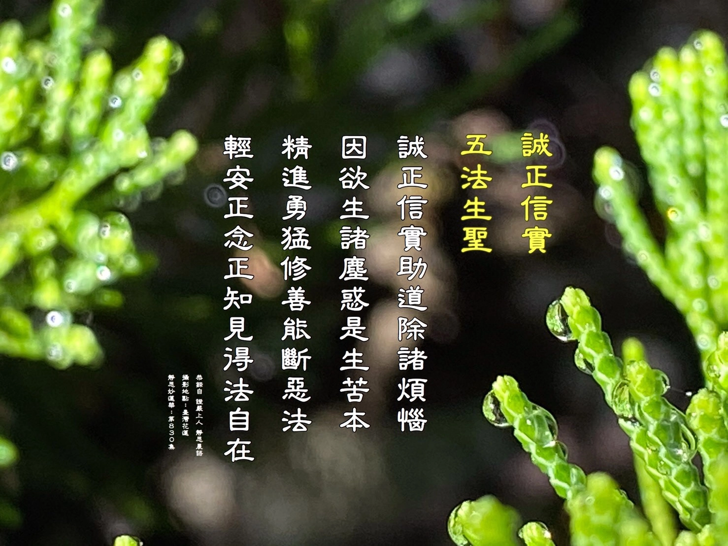 修行不易需勇猛精進。欲念傷害修行者的道心,也是苦的源頭。一念無明由「欲」起,欲就是「貪」,貪、瞋、痴又制造出我慢、懐疑。37助道品是修行的基礎,能守護我們的心念,自然能斷除煩惱!要斷除煩惱就要先建立我們的誠正信實。