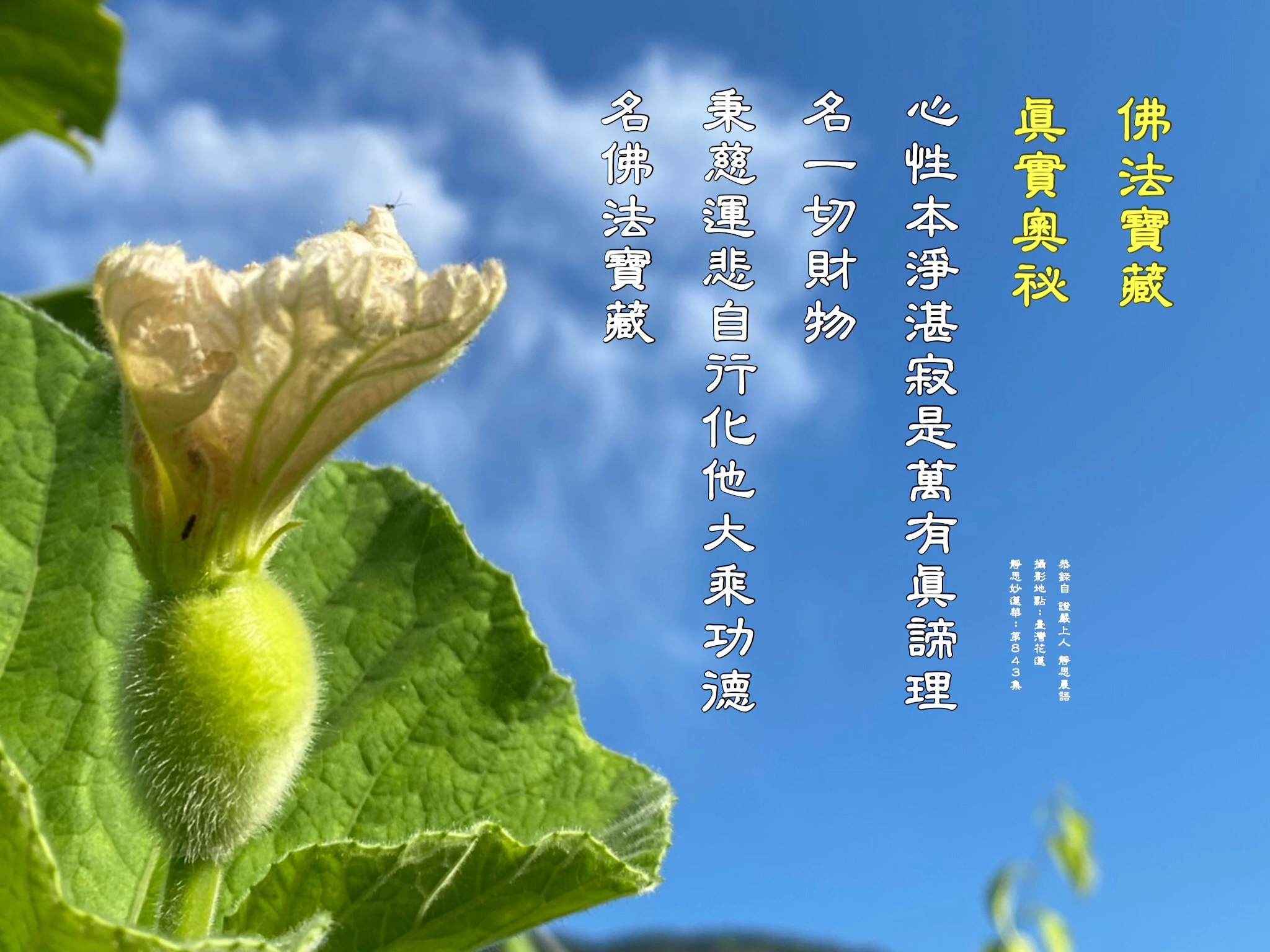 天地萬有的真理人人本具。佛所說的教法,我們若能自我受持。只要一念心清淨,就能從萬物真理中,隨著因緣成熟,不斷付出。這個人人都有的真諦道理「名一切財物」。只要「秉慈運悲自度利他」,這種「大乘功德」,就是人人本具的財富。緣起即出,性空即入,就是佛法的寶藏。