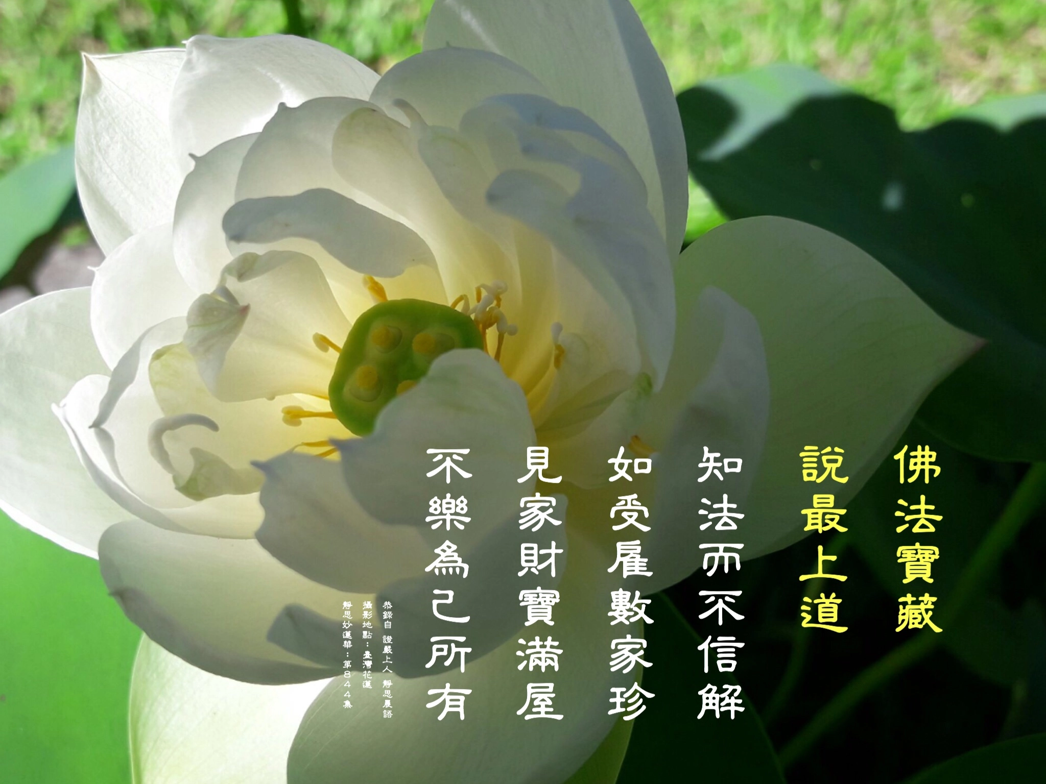 就如今早上人開示,法在身邊而無法信解,就如受雇幫人數家珍,這些寶物都不可能是永遠擁有。了解法的人,若能將這些錢拿去救濟需要的人,做有意義的事情,不知能做多少好事。