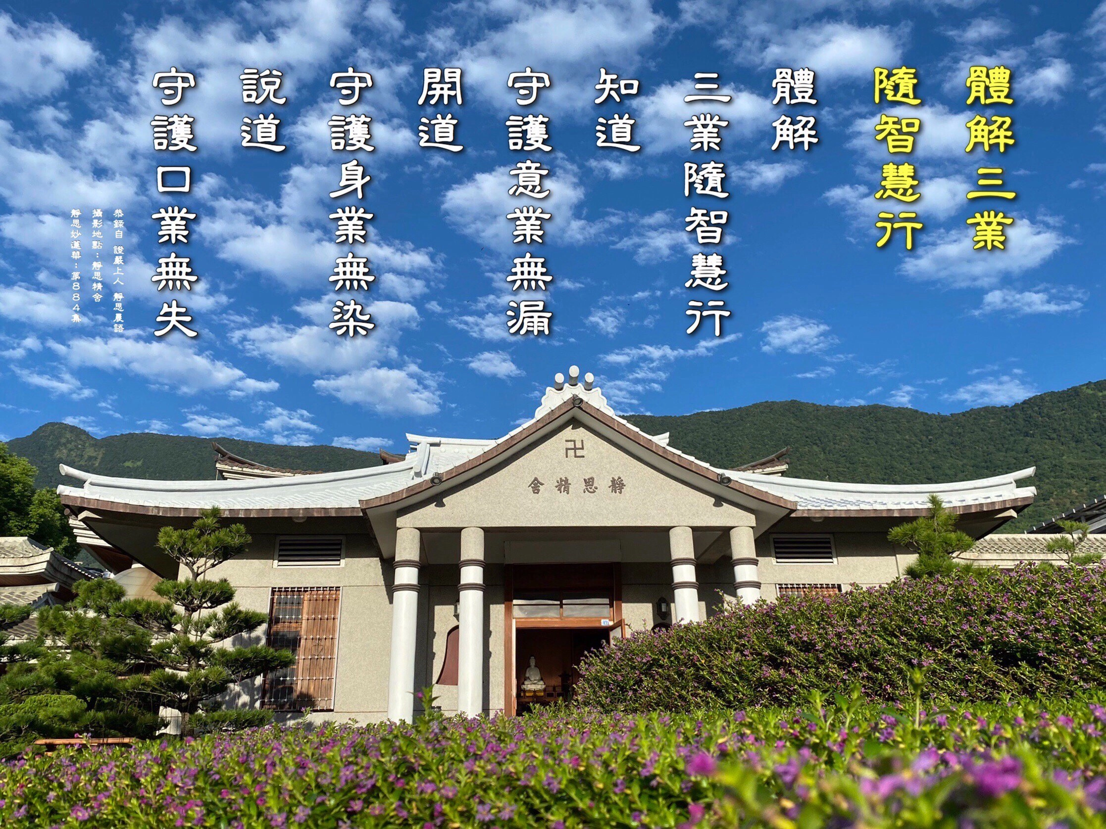 「知道,守護意業無漏;開道,守護身業無染;說道,守護口業無失」,自我警愓,三業隨智慧行。