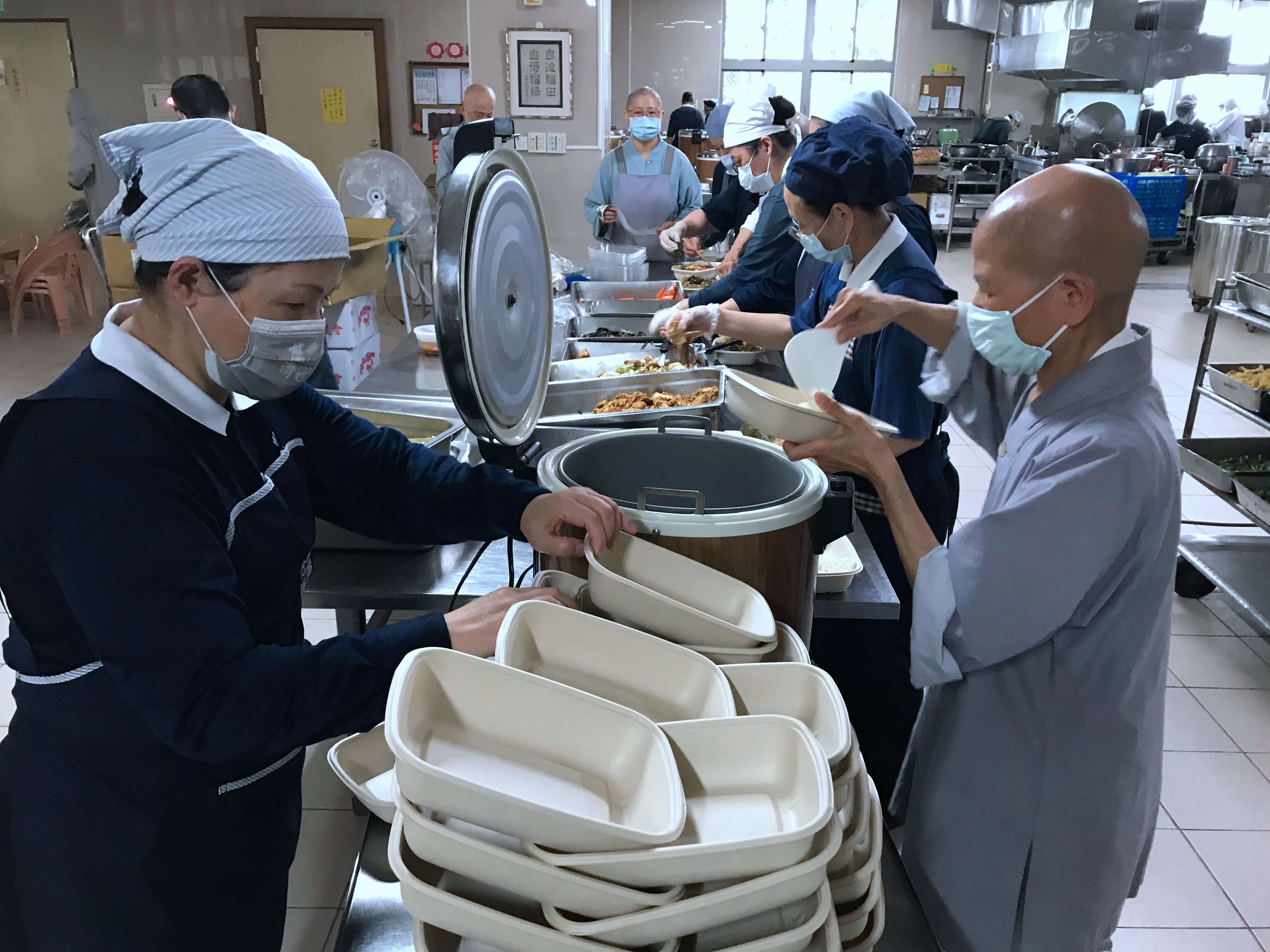 四月一日疫情延燒,花蓮慈院出現確診者,急診室、檢驗科的同仁忙得無暇用餐。德愉師父得知,心裡很不捨,決定送便當傳關懷,因為精舍便當一直是慈院同仁的最愛。