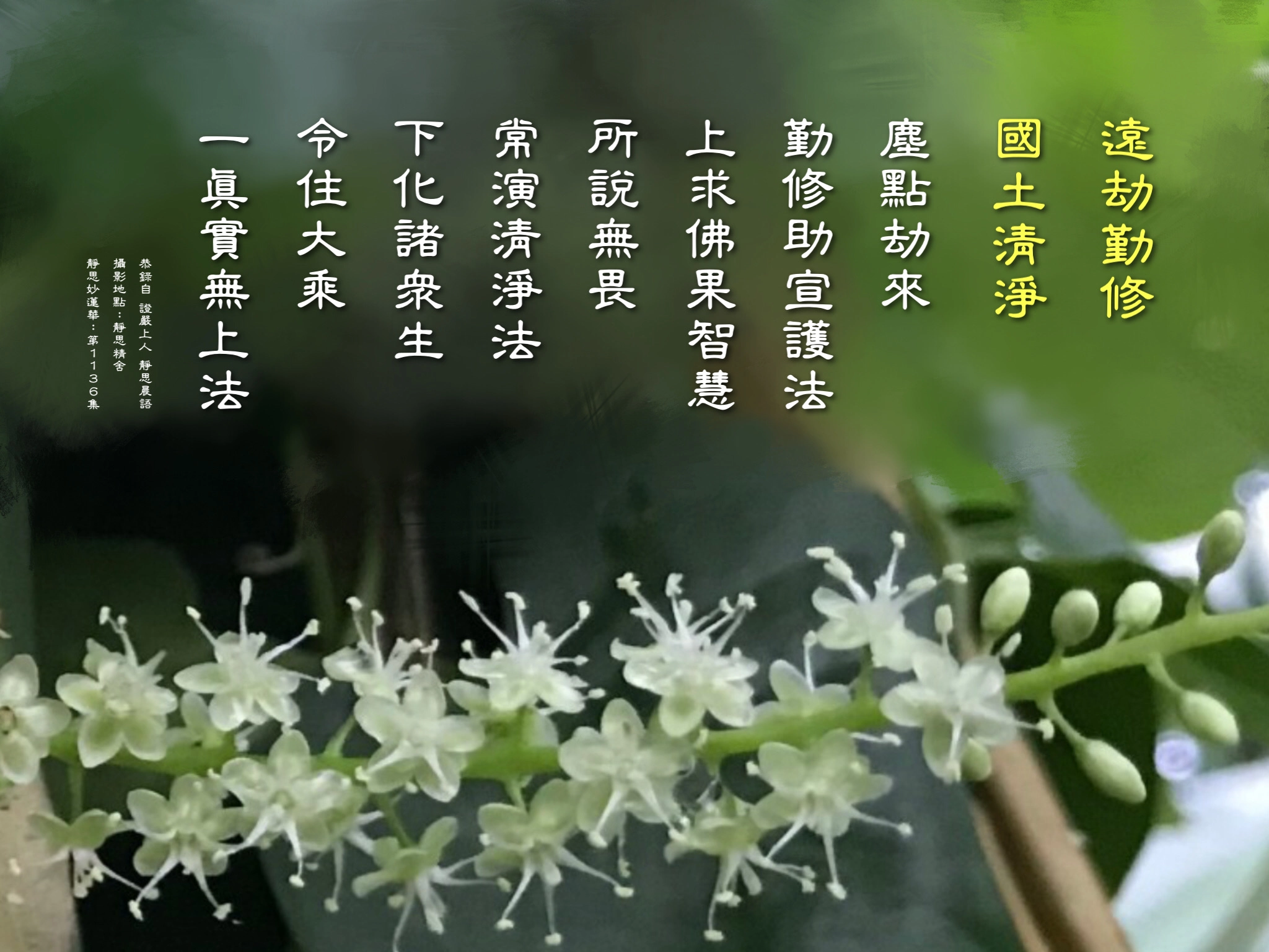 「善化眾生使心清淨」,文中提到要「善化眾生」,其實我們應該要先善化的是自己,使自己的心清淨。