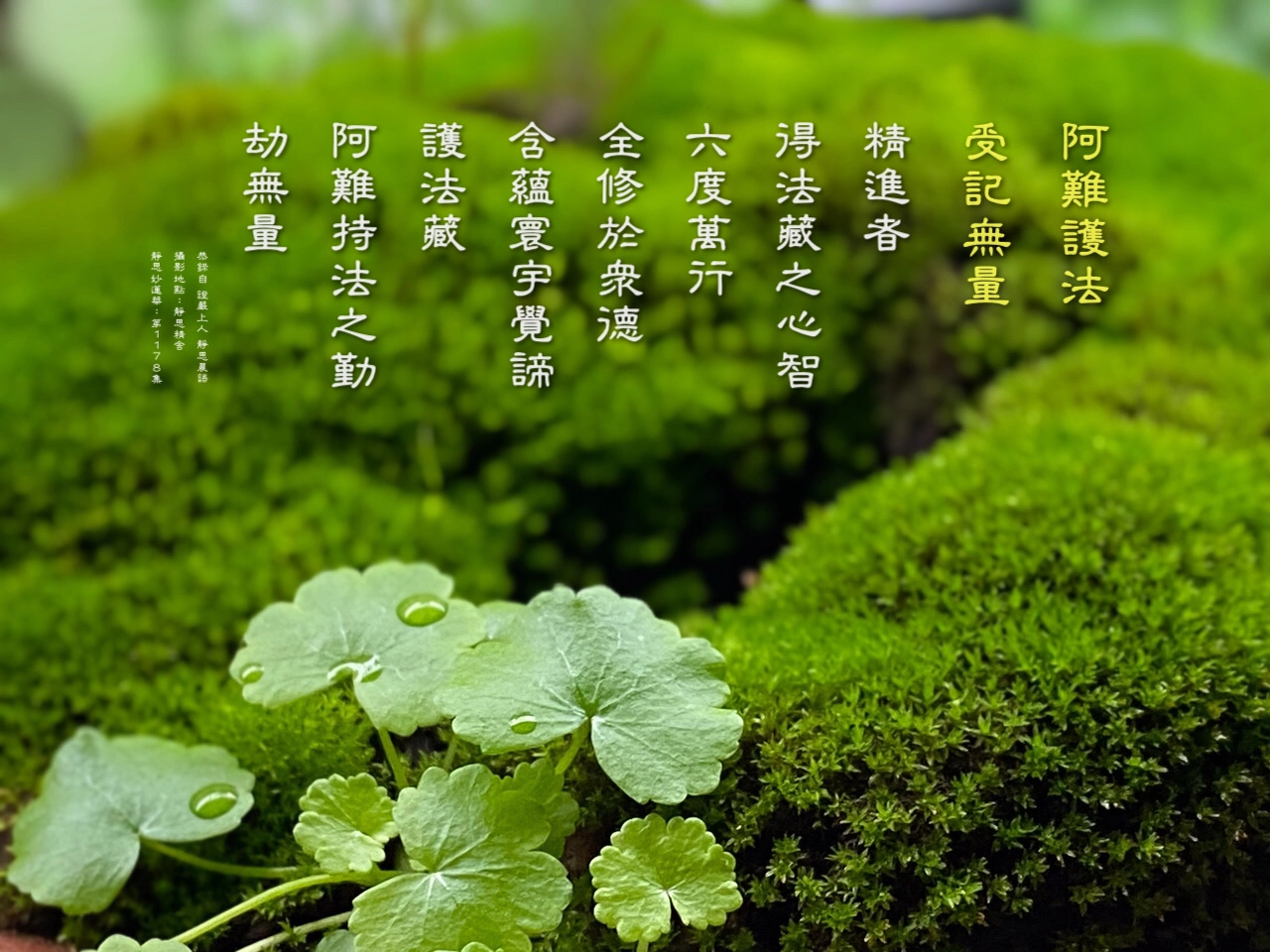 「蓋彼等亦非心存不信」。不是不相信阿難應該得佛授記,只是很期待佛陀能說阿難尊者之夙世因行與本地功德。