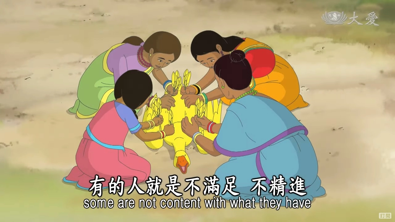 今天上人說的故事《金毛鵝》和昨天的《女人與狼狗》,兩則都說到「欲」。上人說,「欲」就好像吸毒一樣,一定會越吸越重;欲念,不管是財、色、名、食、睡都是欲念。