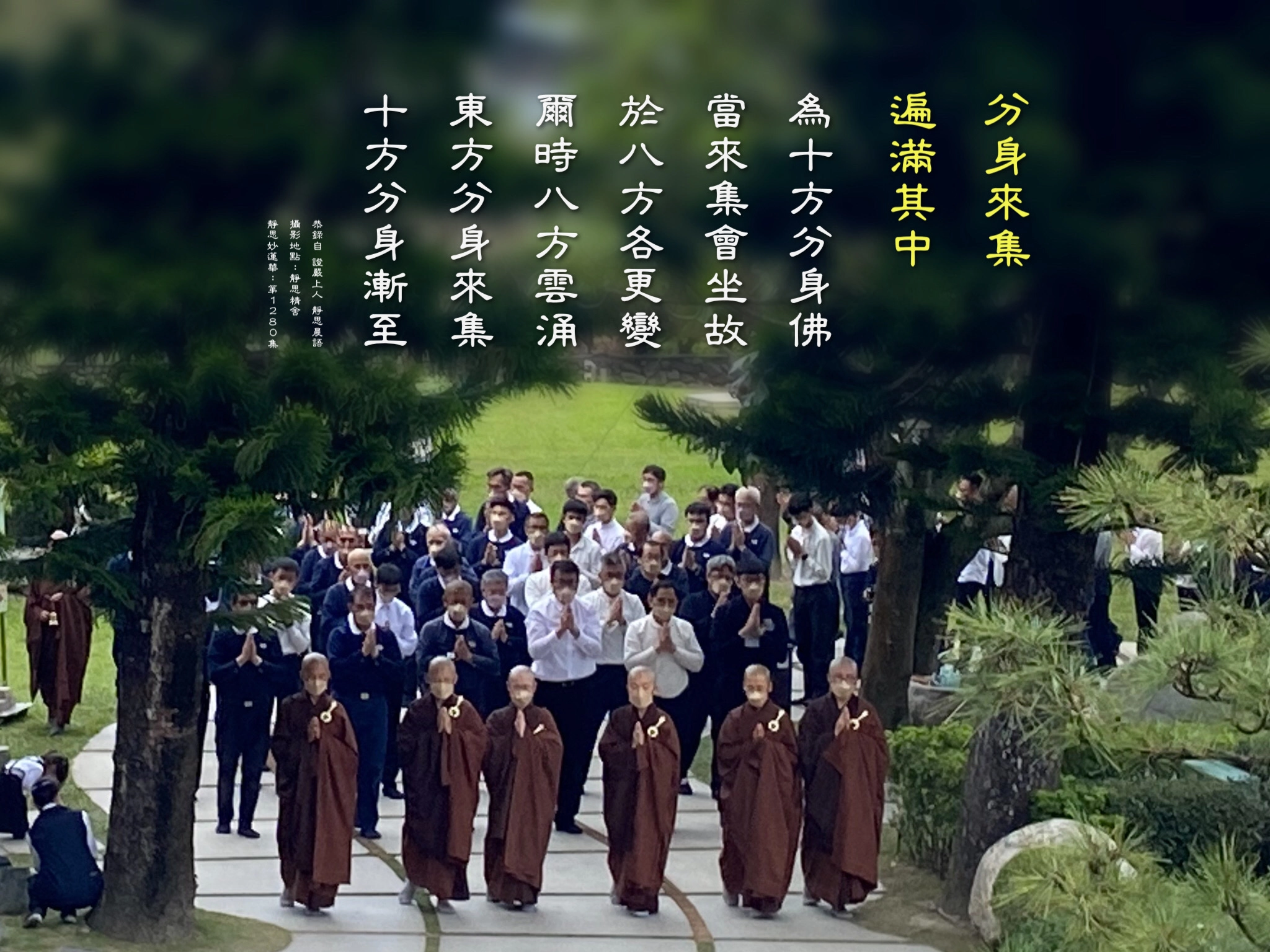 今天要分享「道理歸位」,「道理要歸位,圓滿最上乘」。週年慶時,等於整部《法華經》,包括《無量義經》,用「宏觀」的方式整個共修一遍。現在回到1280集,〈見寶塔品〉的這一集來做「微觀」修學。