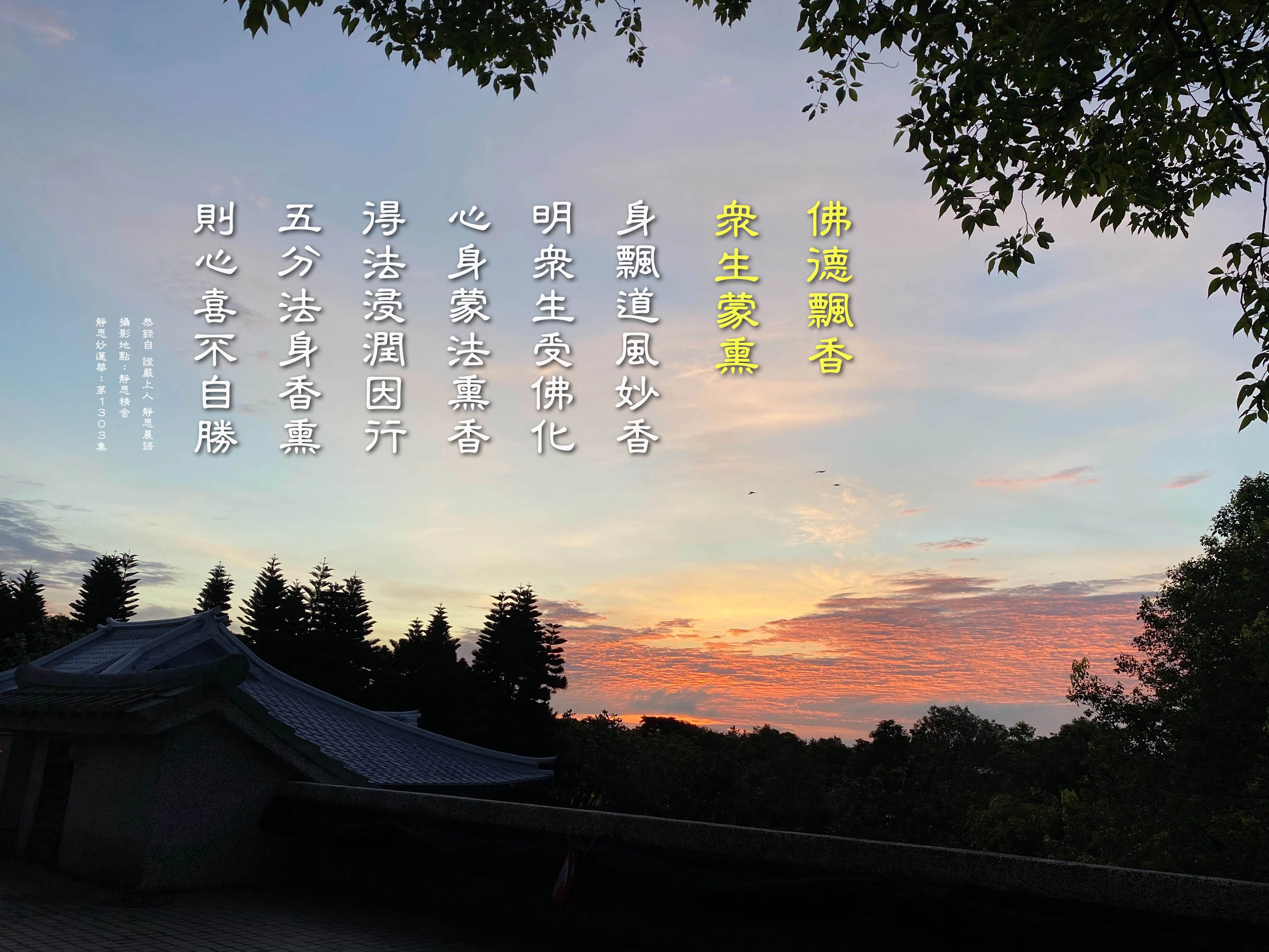 從內心薰習法,聽法改變自己生活,改變自己習氣。自然地,人所看到那分的感覺,從行動中,讓人起了飄逸的信心,就是能感化人,不用說話,自然得到感化,這種道風。