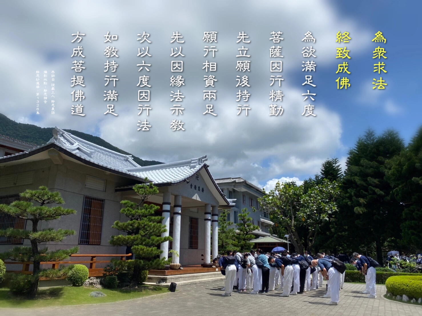 不論在什麼樣的環境,不要忘了我們要修行最初那念心,就是自度、度他人,求大法,成就救度眾生的願力。生生世世要如教持行,要堅持滿足六波羅密,這樣才能成菩提佛道。