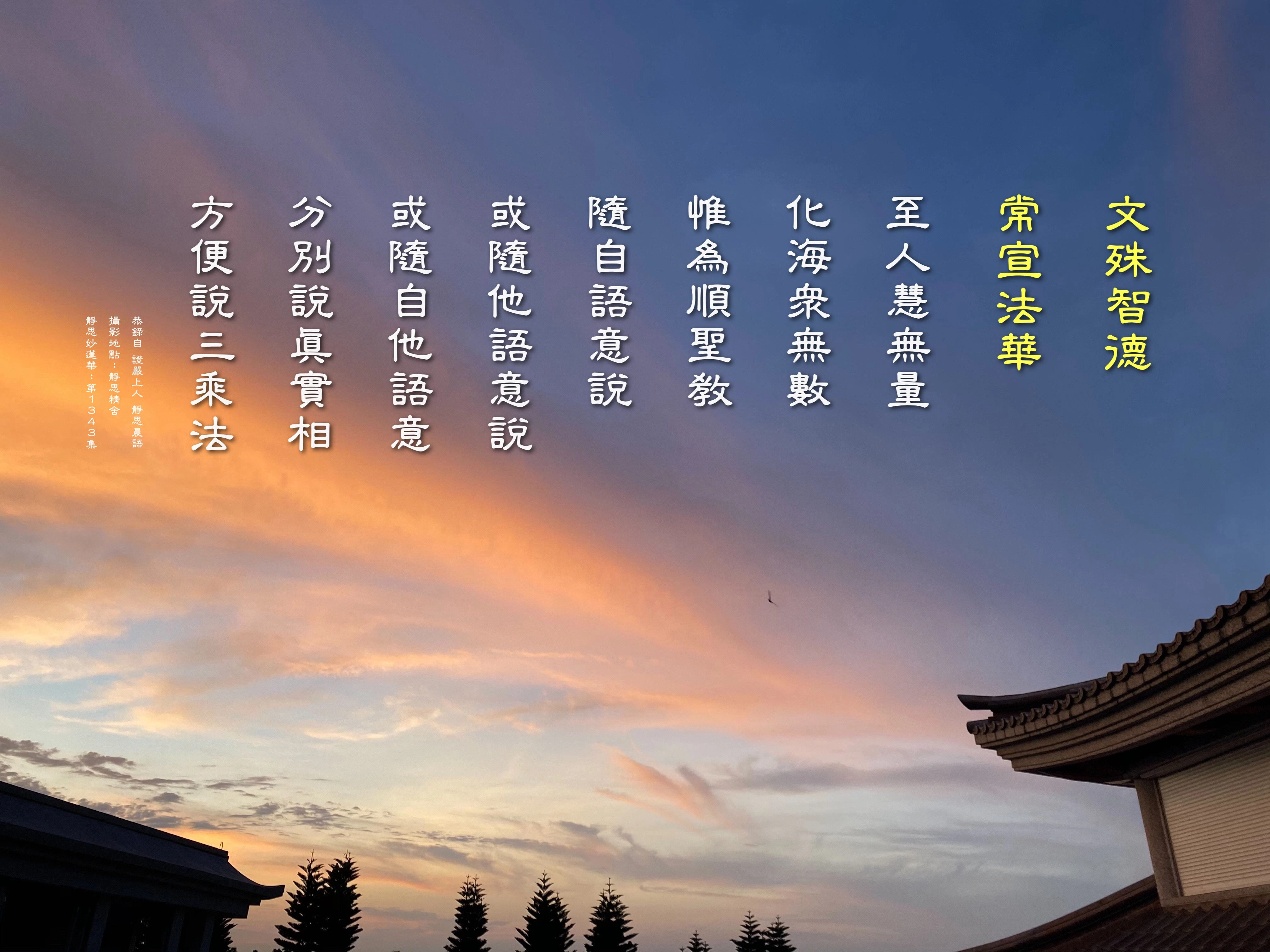 文殊菩薩直接回答:「是這樣。法,就是在《法華經》裡面。」就是《妙法蓮華經》,就是開權顯實。