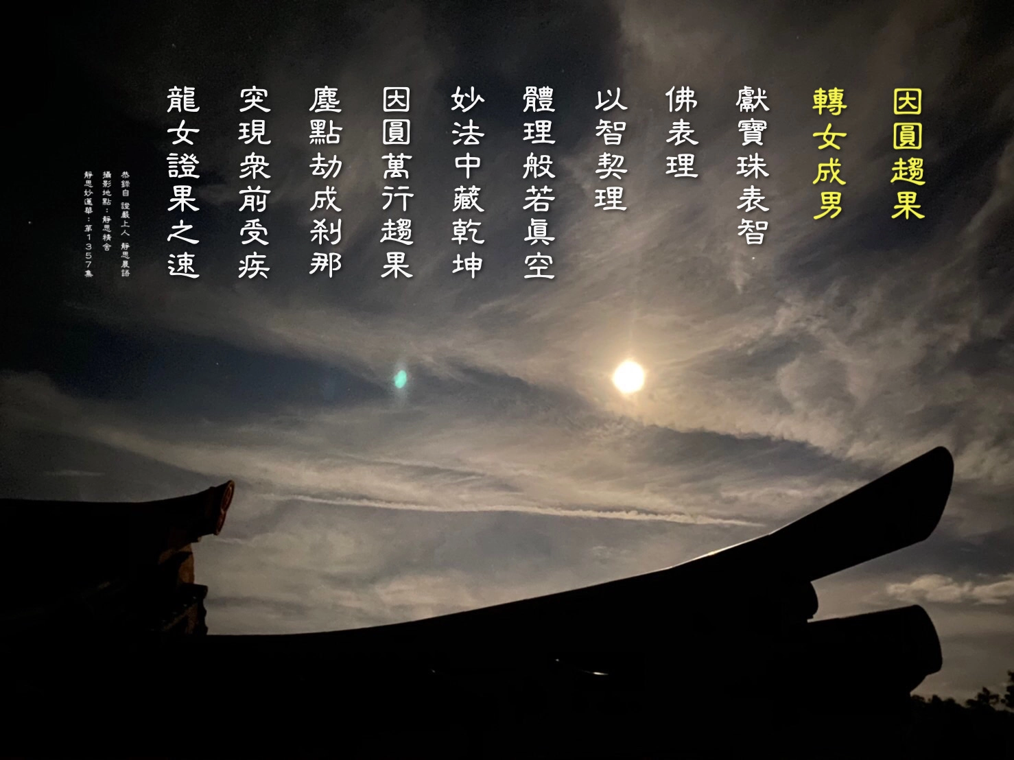證明畜生道,異類也有牠的真如本性,這就是最好的見證,最好的回答。龍女她示現,要讓我們未來的眾生也能夠更加清楚,眾生皆有佛性。