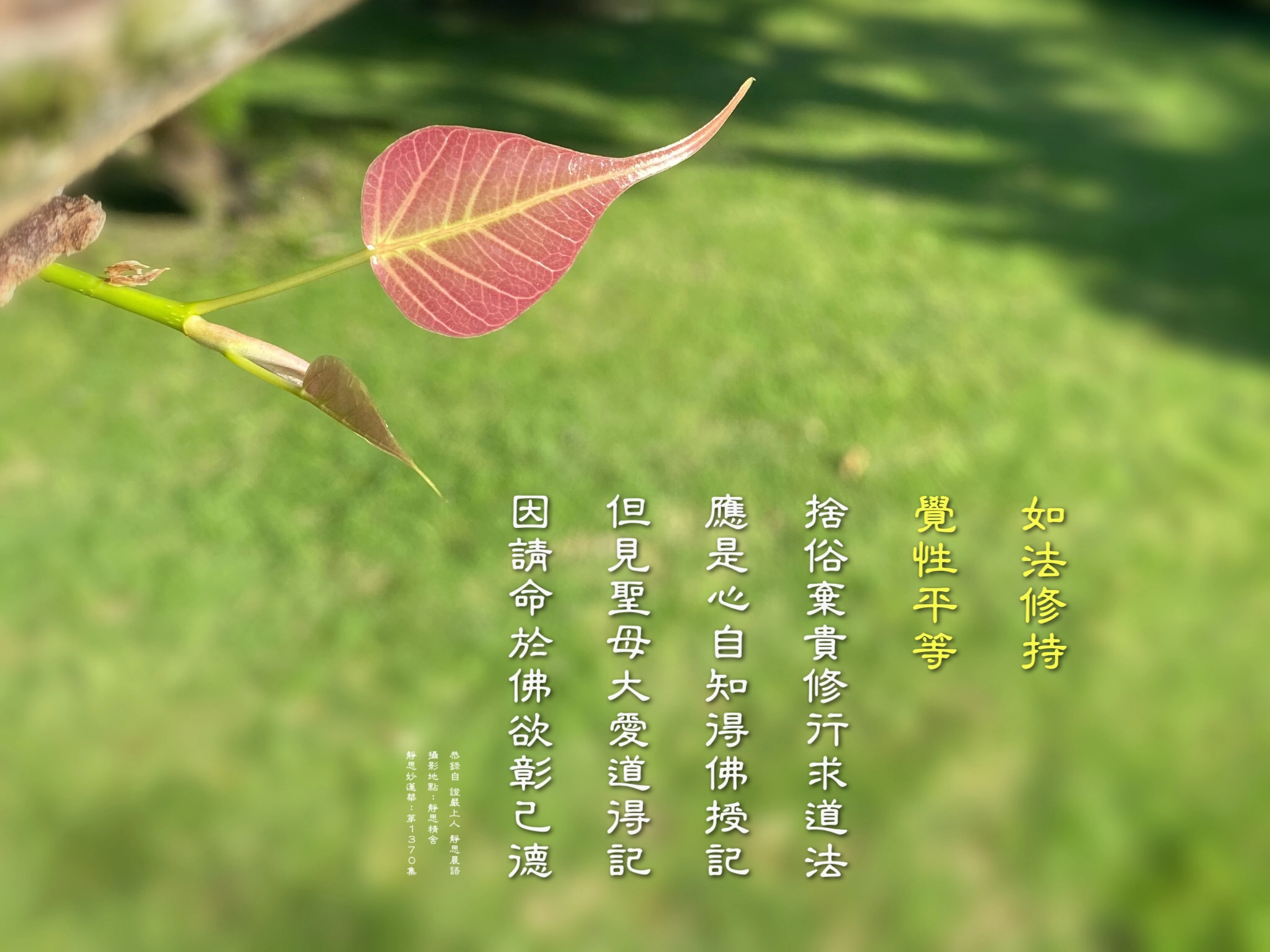 3.1佛陀一直說,眾生性平等,沒有形象的差別,既然聲聞得記,耶輸陀羅應該也是能夠受記。卻是他就是一個盼望,盼望佛陀能夠趕快為他肯定一下,叫出他的名字,布達給大家知道,這種的在意,叫做掛礙。這種的在意,就是還沒有捨,捨去那個執,還沒有捨,這也叫做煩惱,這也是叫做塵沙煩惱,還有這樣微細的習氣在。
