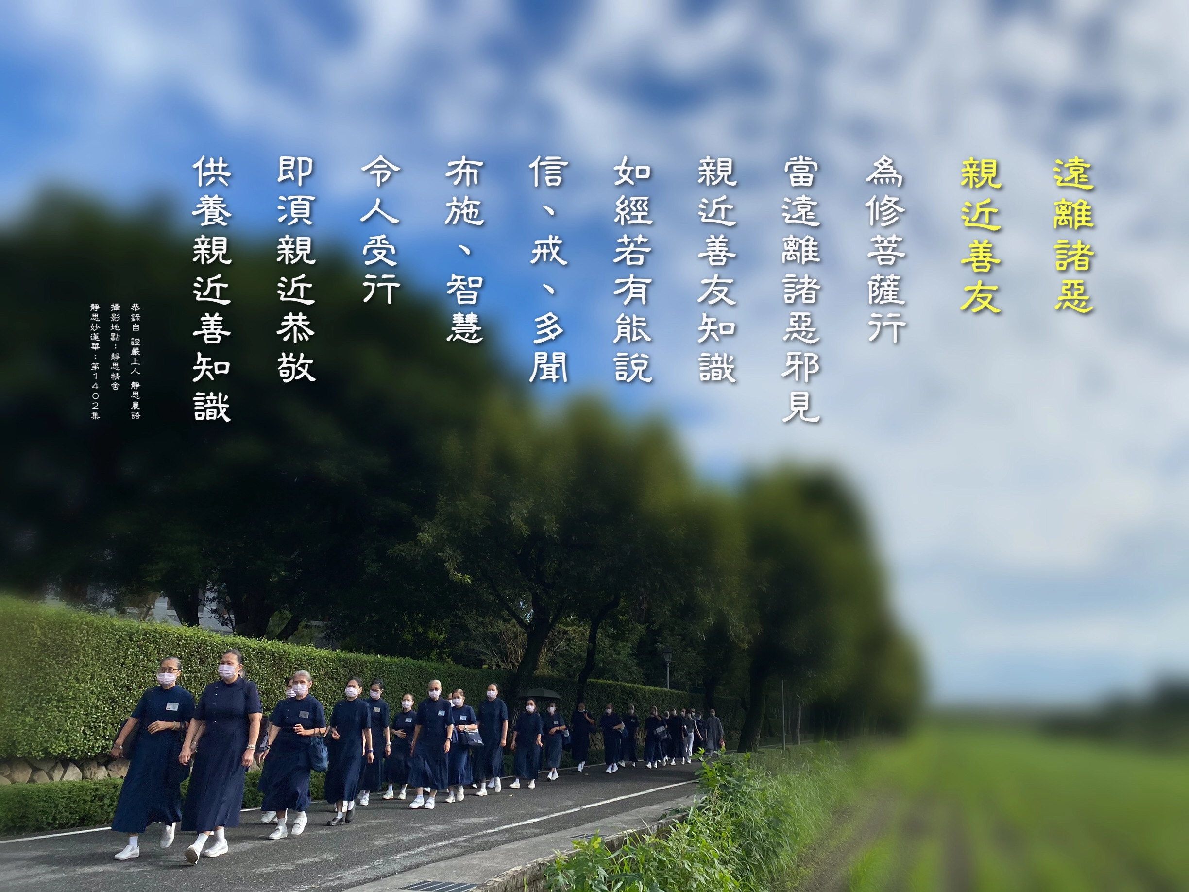 1.「修菩薩行,當遠離諸惡邪見,親近善友知識」。我有親近恭敬善友知識?