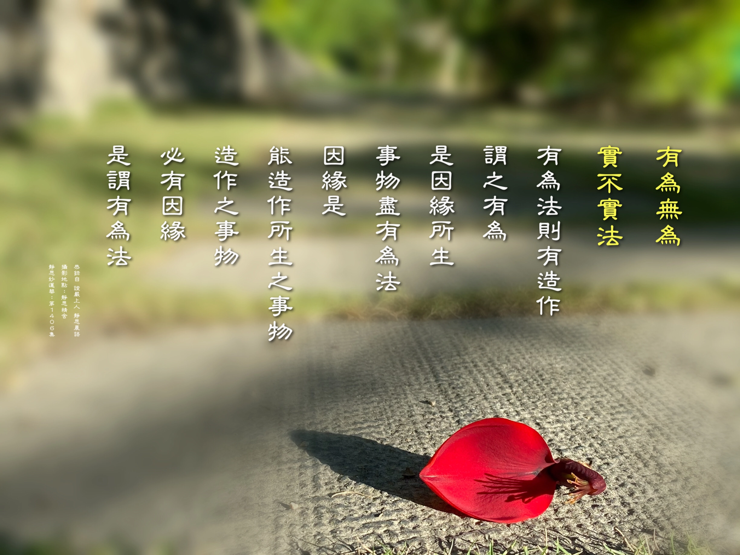 今天談到「有為法」、「無為法」,讓我想到我們的環保輔具平台,這個平台的菩薩不忍眾生苦的心念,快速的將輔具送給需要的人,這就是「有為法」;需要者接受了輔具歡喜感恩,又去跟需要者分享助人最樂的慈悲利他精神,傳達美善,「苦既拔已,復為說法」,《無量義經》精神就是「無為法」。