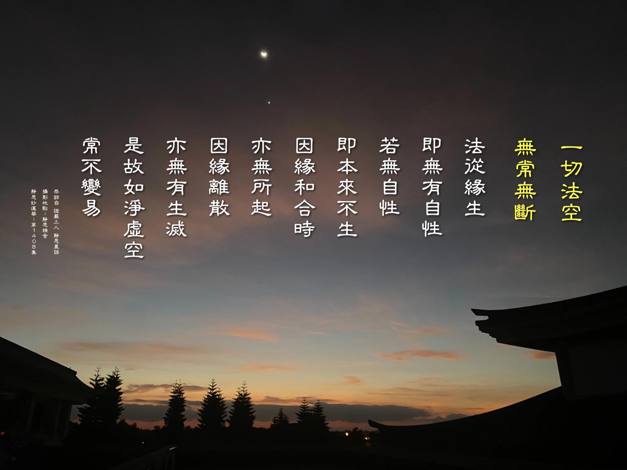 大地物理「成住壞空」,身體「生老病死」,心理「生住異滅」,這就是「四相」。