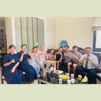 【近悅遠來】愛的接力文.余國雄(書軒本店店長) 不約而同的兩通電話 來自德國就讀慈濟大學一年級的魯沛亞同學(左二),偕同家人參訪靜思精舍後,來到書軒本店稍作歇息。(圖片來源:余國雄提供) 2025年8月10日下午2點7分,電話響起。前一天才...