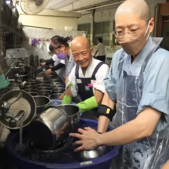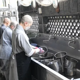 【在此一方】入「洗碗三昧」文.靜明 「洗碗」,在靜思精舍屬副執事的工作,它可不只是「洗碗」與「洗盤子」而已,還含括筷子、湯匙、湯鍋、湯瓢、飯鍋......等鍋碗瓢盆的事,師父們統稱為「洗碗」。 鍋碗瓢盆,是指公盤與湯鍋等公用物件。湯鍋有...