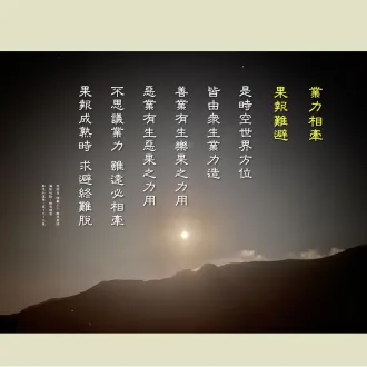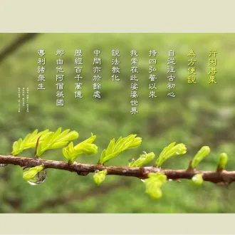 2024/05/04早課連線《法華經》第1515集 業力相牽 果報難避思惟提綱(敬請貼緊上人開示的內容找答案)/德倩師父;圖卡/釋德宛 1. 善業能夠「生樂果」。我們的生活,衣、食、行沒有欠缺,是過去有造善業,這是「善業有成樂果之力用」。您相信嗎?若相信,我們現在應該如何繼續...
