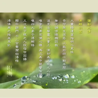 2024/04/11早課連線《法華經》第1511集 彌勒之請 佛顯祕密思惟提綱(敬請貼緊上人開示的內容找答案)/德倩師父;圖卡/釋德宛 1.佛大覺悟道之時,第一個念頭是什麼?佛大覺悟道之時,第一個念頭就是眾生皆有佛性,想要直指人心、明心見性。 2.佛陀如何耐心教育小、中根機的人?...