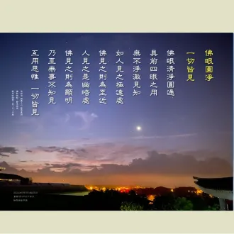 2024/05/18早課連線《法華經》第1519集 佛眼圓淨 一切皆見思惟提綱(敬請貼緊上人開示的內容找答案)/德倩師父;圖卡/釋德宛 1.何謂「五眼」?各為何人所具?1.1「五眼」是佛眼、法眼、慧眼、天眼、肉眼。1.2凡夫是用「肉眼」。所看的都是一般的貪、瞋、癡等見解。天人是用「天...
