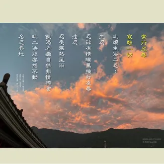 2024/01/01早課連線【法華經】第1447集 常行忍辱 哀愍一切思惟提綱(敬請貼緊上人開示的內容找答案)/德倩師父;圖卡/釋德宛 1.何謂「生忍」、「法忍」?生忍,忍諸有情瞋罵捶打凌辱。法忍,忍受寒熱、風雨、飢渴、老病,自然非情禍害。 2.菩薩的心地是忍辱。為什麼會堪得忍辱...