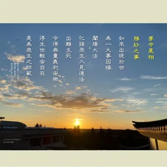 2024/01/07早課連線《法華經》第1453集 夢見妙事 得佛授記思惟提綱(敬請貼緊上人開示的內容找答案)/德倩師父;圖卡/釋德宛 1.佛陀《無量義經》講完,為什麼放瑞相之光?因為佛將要講《法華經》,這是佛陀一生中最在意的法。他一生把《法華經》一直深藏在他的內心本懷,來人...