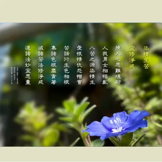 2023/10/27早課連線《法華經》第1394集 染情生苦 宜修淨戒思惟提綱(敬請貼緊上人開示的內容找答案)/德倩師父;圖卡/釋德宛 1.何謂「八苦」?它的最源頭從哪裏開始?1.1生、老、病、死、愛別離、怨憎會、求不得、五陰熾盛。1.2它的最源頭就是從「染情」開始。 2.用這麼多法,沒...