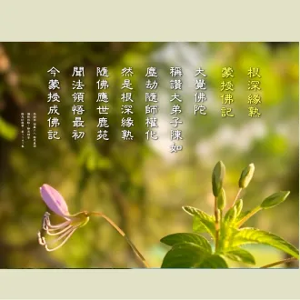 2022/10/07早課連線《法華經》第1141集 根深緣熟 蒙授佛記2022/10/07早課連線《法華經》第1141集 根深緣熟 蒙授佛記 思惟提綱(敬請貼緊上人開示的內容找答案)/德倩師父 1.佛初成佛時,在鹿野苑中初轉法輪,講四諦法,佛陀弟子中聽法第一位覺悟的大弟子,是哪一位?憍陳如。 2.悉達...