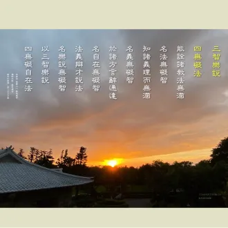 2024/07/11早課連線《法華經》第1559集 三智樂說 四無礙法思惟提綱(敬請貼緊上人開示的內容找答案)/德倩師父;圖卡/釋德宛 1.何謂「以三智樂說」?「三智」是一切智、道種智、一切種智。「一切智」了解天下的事,「道種智」能夠分別事與理,「一切種智」是能夠身體力行。三...