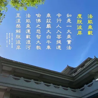 《靜思妙蓮華》第810集 法能乘載 度脫彼岸(二)圖卡/釋德宛 如是一大乘實法,令行人入菩提道,乘莊嚴大白牛車;喻佛之悲智大教,法能乘運載渡河,至涅槃解脫彼岸。 分享者 / 陳清香 法能乘運載渡河,至涅槃解脫彼岸。在「火宅喻」中,以羊車、鹿車、大白牛車,分別...