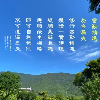 《靜思妙蓮華》第793集 當勤精進 勿令漏失(一)修行當勤精進,體證一實諦理,隨順義諦意趣,應順眾生機緣,即可自利利他,不可遺漏忘失。 分享者/劉怡均(明泓/慈大校長) 修行須殷勤精進,與人互動,自利而後利他,不可遺忘漏失。 曾經向上人請領一本《無量義經》,...
