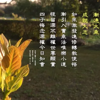《靜思妙蓮華》第794集 漸通大乘 成就大志(三)如來激發進修 轉教使悟,漸引入實乘法 唯樂小道,恆留滯不離權 世尊顯實,四子悔念滯權 今日知會。 分享者 / 紀靜暘 須菩提等四位尊者看到佛陀向舍利弗授記,已經深深懺悔:「恆留滯不離權,世尊顯實,四子悔念滯權,...