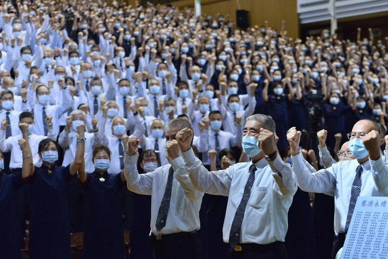 隔天,中區慈濟幹部回到精舍向上人拜年。大家齊聚一堂,在上人座前虔誠發願,其中一句話特別令人動容:「我們在,我們承擔。」這句「我們在」,不僅是口號,更是弟子對師父的承諾,是願意共同扛起責任、守護使命的心念。那是一種心與心之間的默契,更是一份同行不退的決心。