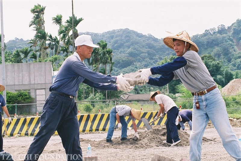 楊冠新師兄親自投入台中慈濟志業園區醫療園區工程連鎖磚鋪設工程。(2005/06/22攝影/黃善繼)