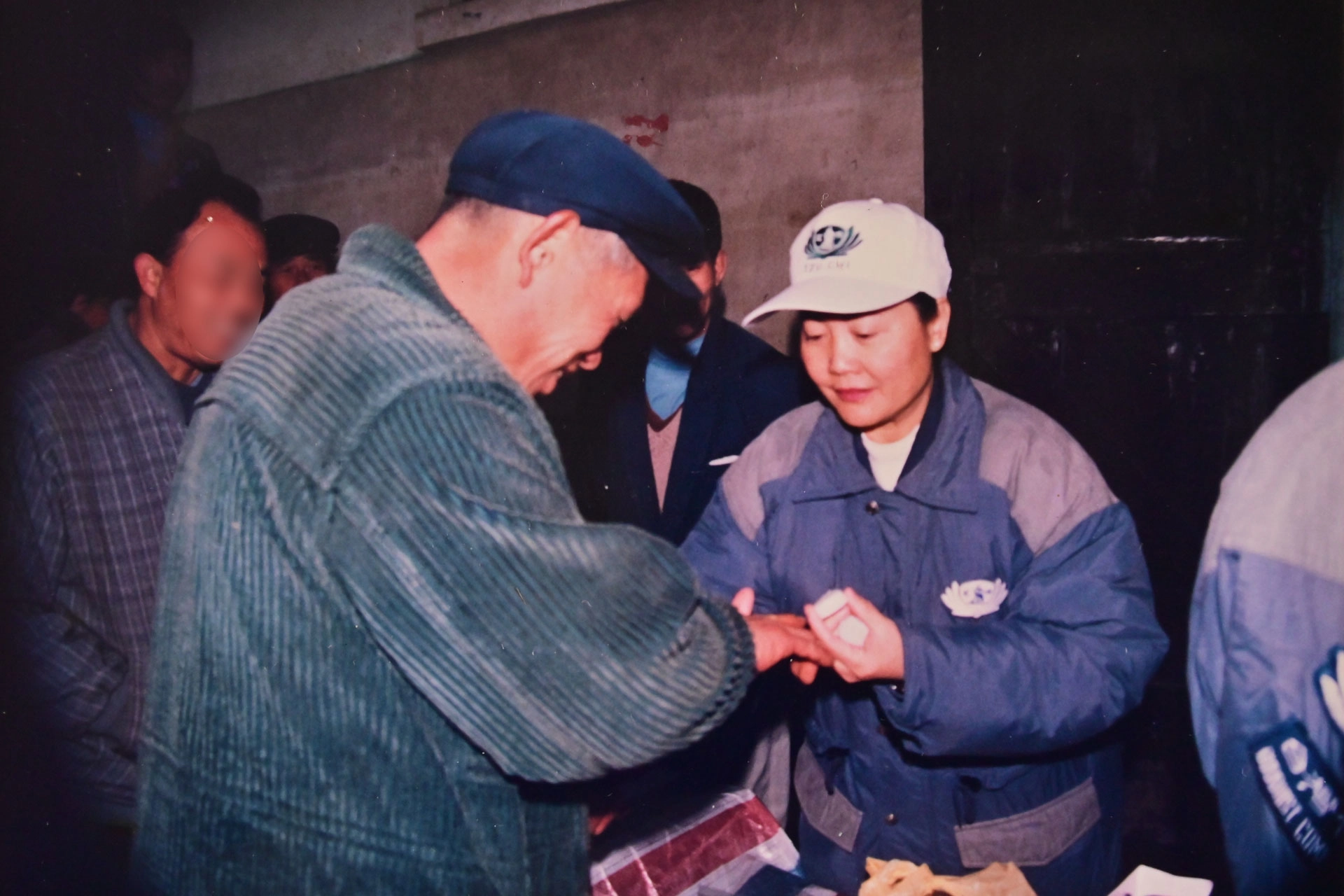 2000年,黃麗芬於湖南省益陽市關懷當地村民,並不捨地以凡士林為其擦拭照護。(攝影:張國振)