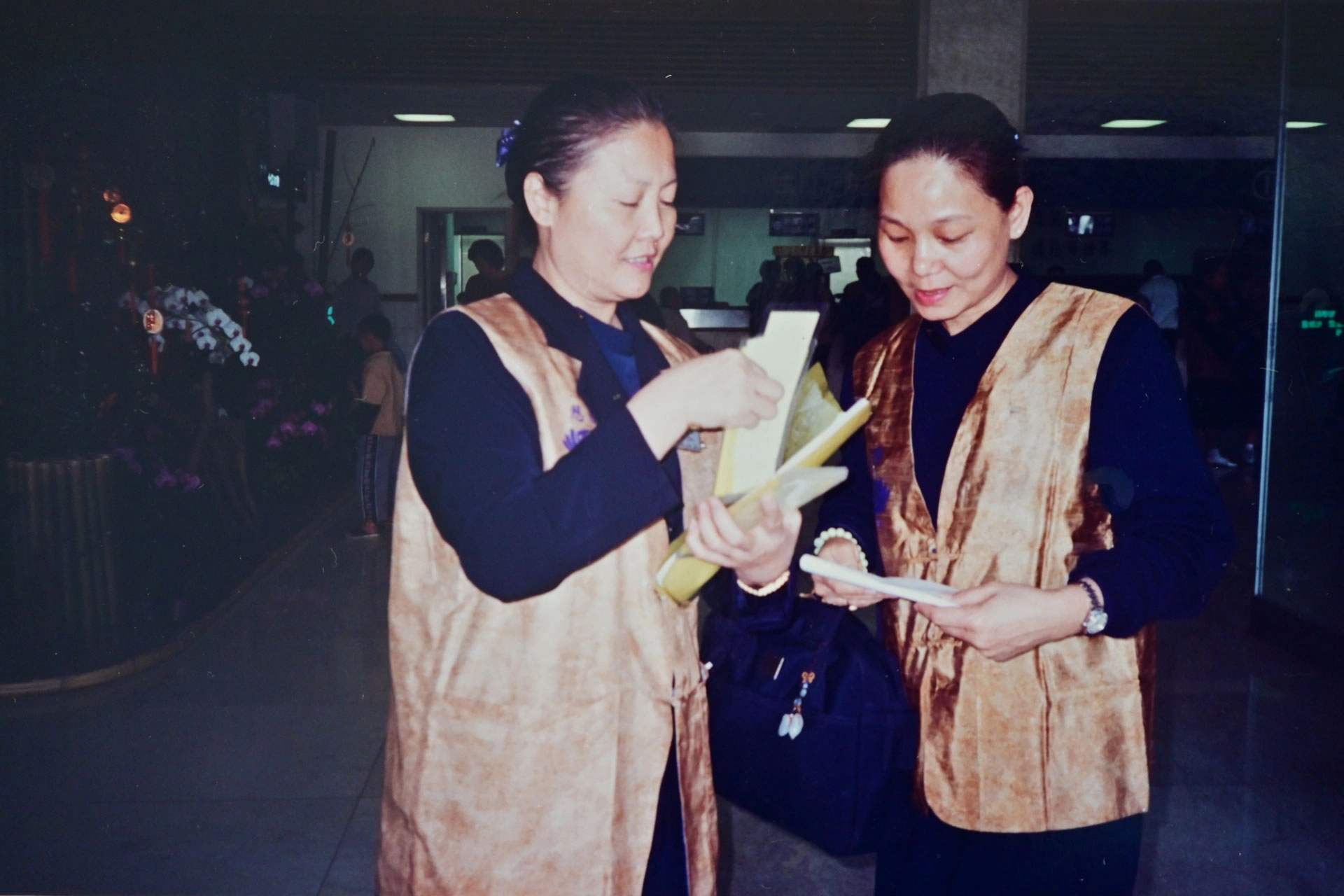 1997年間,由黃麗芬(左)帶領大中區會眾自臺中出發,前往花蓮慈濟醫院及靜思精舍參訪。(圖片來源:黃麗芬提供)
