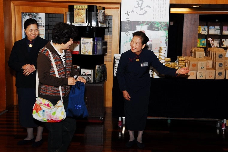 臺中東南區社區歲末祝福,林滿里(右)輕聲細語地招呼會眾,讓會眾有溫馨的感覺。(2006/12/29;攝影:鄧和男)