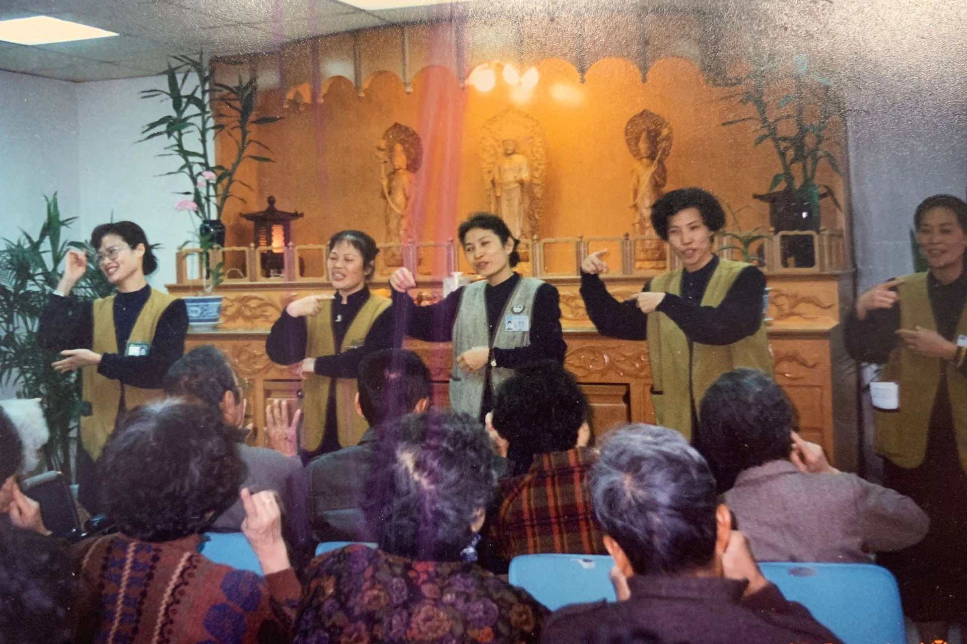 當時鄭粧師姊是新竹區的醫療志工窗口,個性柔和,對紀律卻非常嚴謹,也相當注重服裝儀容。在她的帶領下,新竹區志工每次出梯都很受歡迎,因為隊伍整齊、做事踏實認分,是很扎實的草根志工。
