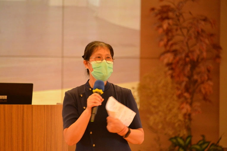 新竹靜思堂新竹區醫療志工基礎研習課中,曾美玉分享醫療志工成立三十八年來一路走來的足跡,期勉志工在服務中讓智慧與成長並進。(2023/05/27;攝影:陳星光)