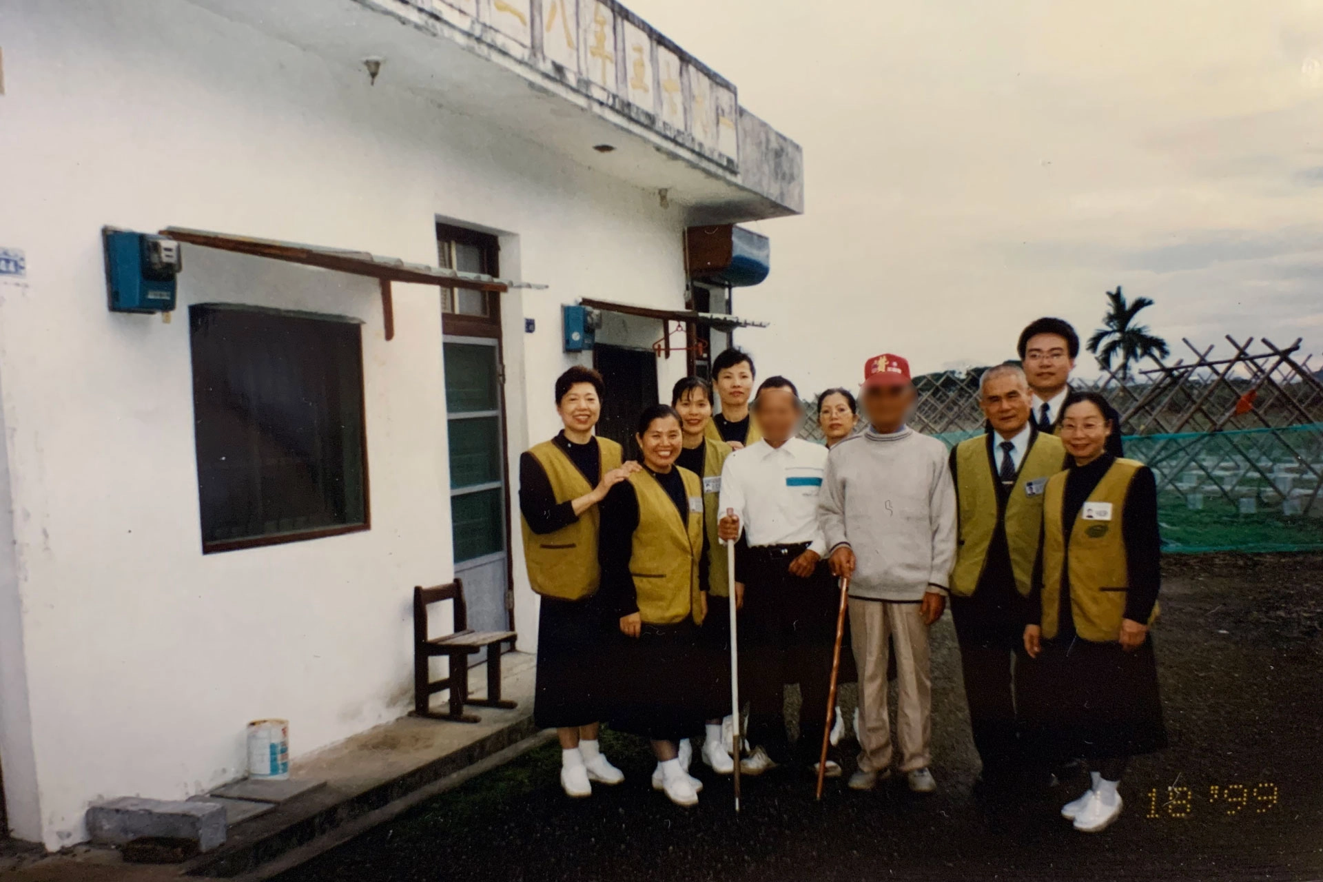 1999年,曾美玉(左三)與醫療志工一同外出訪視慈濟為榮民興建的住屋。(攝影:顏惠美)